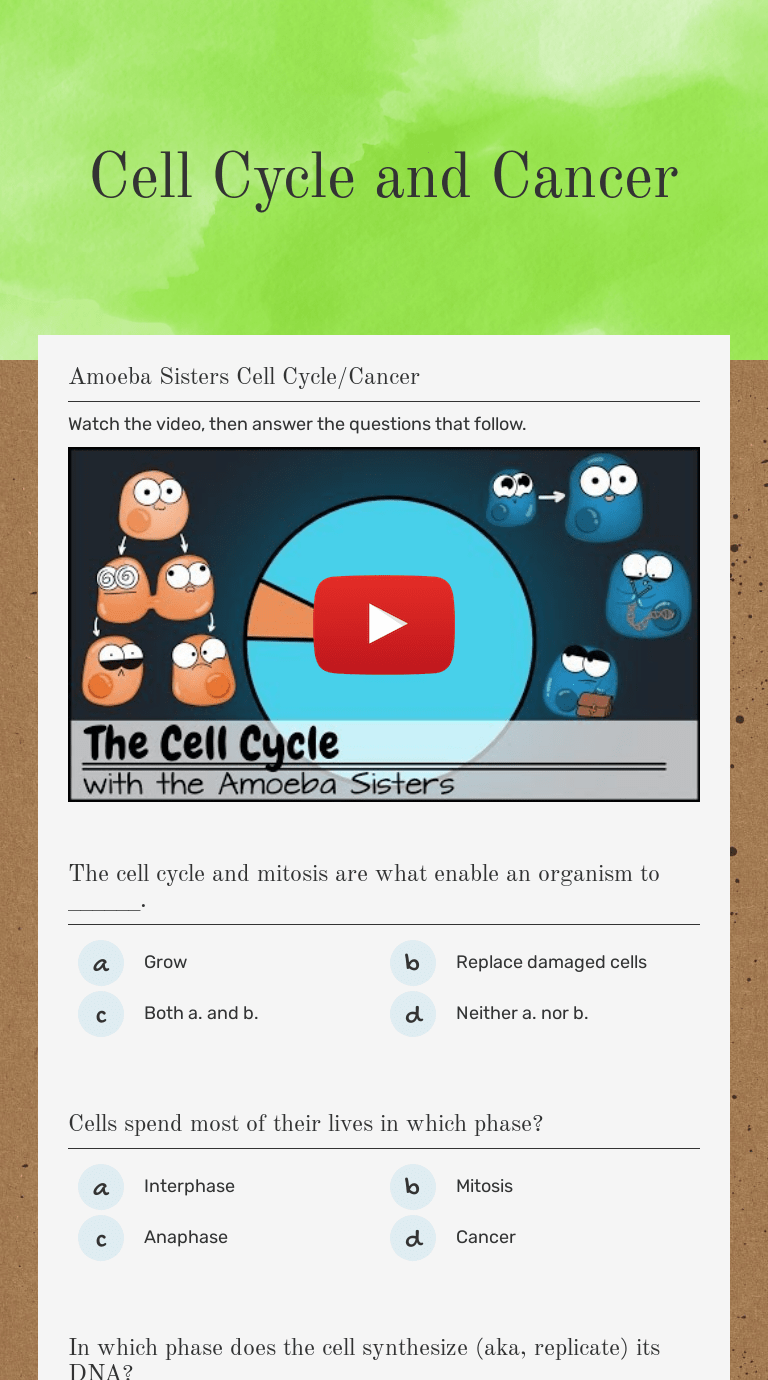 Amoeba Sister Mitosis Worksheet Answers / Solved Amoeba Sisters Video Reca Mitosis The Amazing Cell Chegg Com -. When interphase doesn’t occur cells don’t grow crossing over creates new combination of genes in the gametes that aren’t found in either parent,. Amoeba sisters video worksheetthe cell cycle & cancer · amoeba sisters video recap mitosis.pdf. Printed text, answer the question for that slide on this worksheet. Cell division review sheet key. Print out the cell cycle wheel and follow instructions to complete.